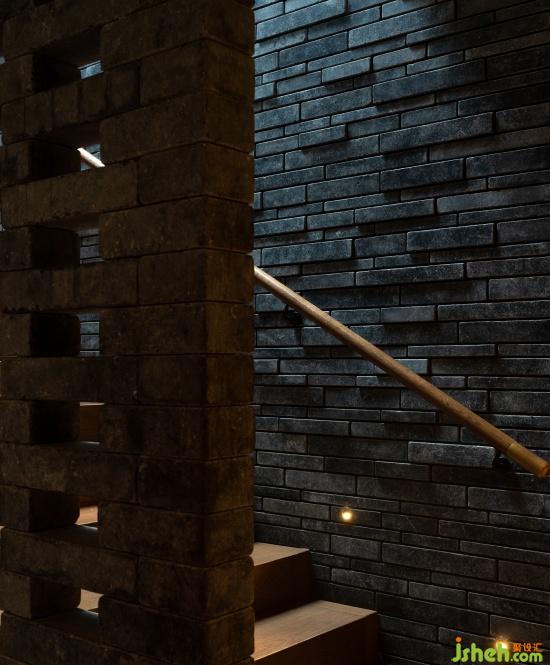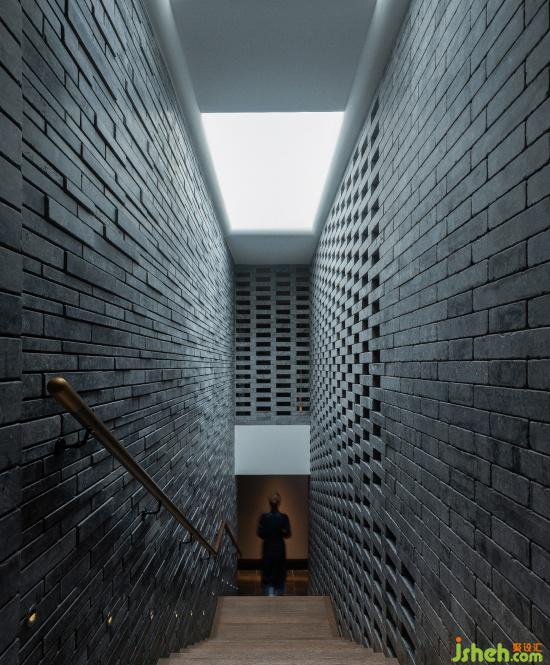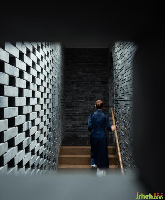 步入茶室需拾級而上,身側立面青磚有序陣列,天光傾瀉,恍若步入一個時間和空間都壓縮倒錯的通道,時間飛逝或停滯似乎皆有可能,正是經(jīng)過短暫的抽離,眼前豁然開朗——