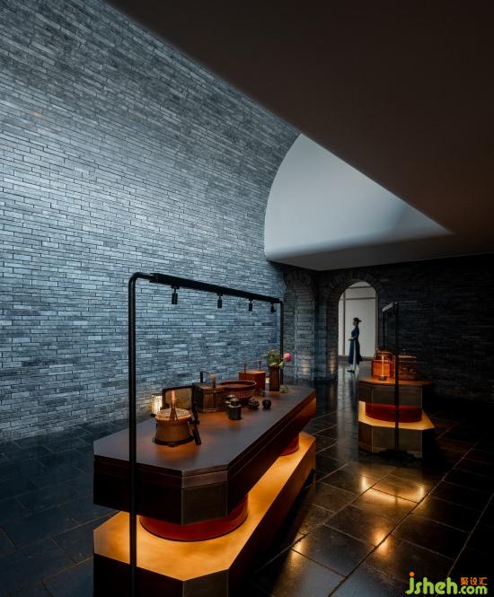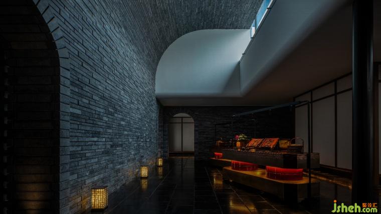 The golden bricks are still, while the light is diffused; the windows are still, but the trees rustle; the screen paintings are still, yet the contemplative mind flows. Wherever one stands, the space has a sense of depth and movement. Sloped horsehead walls, deconstructed ruyi gates, columns, and latticed windows appear and disappear in layers. Wood, stone, paper, lacquer—these materials, with their rich textures, construct the scene, and more importantly, they build emotion.