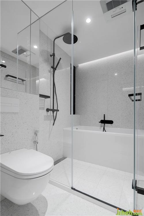 每間臥室都有女性居住,原始戶型的兩個衛(wèi)生間根本無法滿足。設計師為每個房間均設置了獨立衛(wèi)生間,并標配了暖風排風扇,方便烘干女性的貼身衣物。