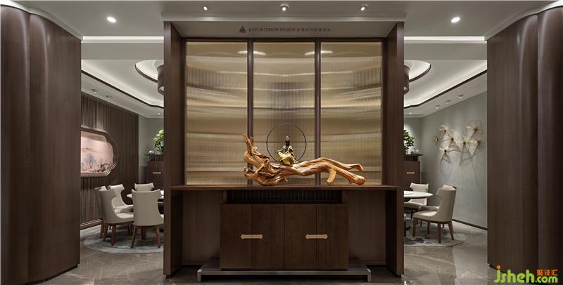 萃取傳統(tǒng)文化精髓,傳承自然美學(xué)風(fēng)范,以文化符號與山水為魂,藏巧于拙,于內(nèi)斂含蓄中詮釋凡俗化意境里所獨(dú)缺的高雅與秀美,讓人置身于丹青水墨之中。立足于當(dāng)下,以人為尺度,摒棄雍容繁復(fù)的裝飾,將新中式元素與現(xiàn)代材質(zhì)巧妙柔和,素雅與靈動(dòng)兼得,形成了一個(gè)氣定神閑、富于文化氛圍和精神歸屬感的當(dāng)代人居空間。