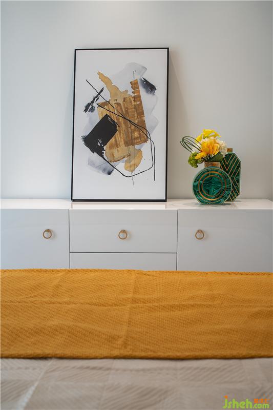 臥室布置淺色棉麻織物和乳白色系家具來制造舒適平和的觀感,燈飾與飾物搭配更顯簡潔輕致,整體呈現(xiàn)出一種舒適自然、安恬靜默的休憩氛圍,好似清泉流水,緩緩而歌,待亥子時刻,夜深人入定,山河夢間。