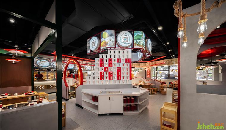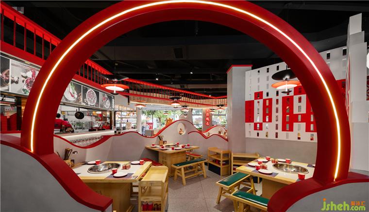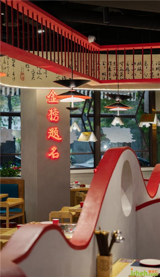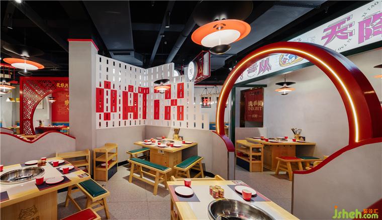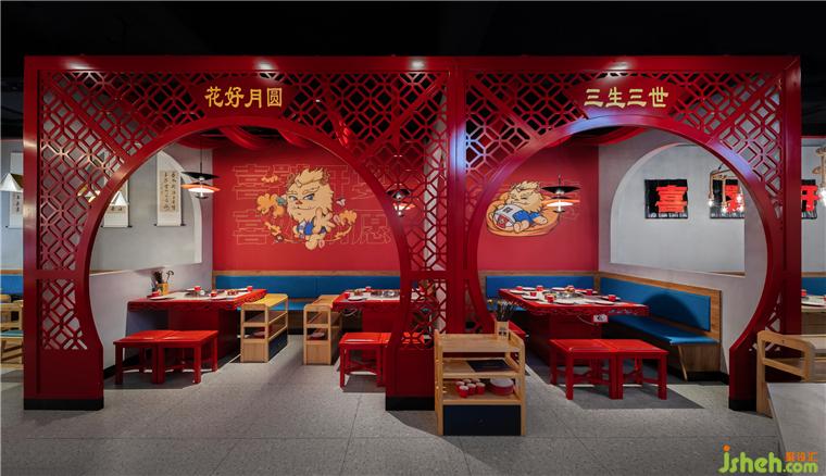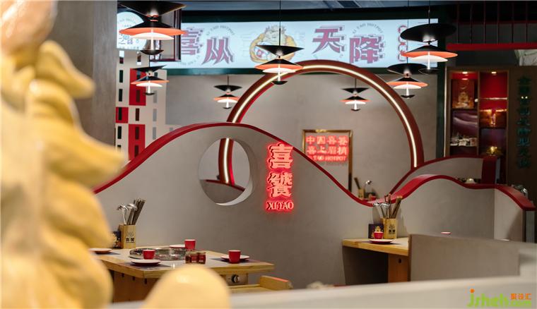 無論是視覺呈現(xiàn)上,還是實用便捷上,都有著無可比擬的競爭性,成都喜饕餐廳設(shè)計利用洞房花燭,喜從天降,久逢好友、金榜題名等大場景與火鍋用餐區(qū)相結(jié)合。