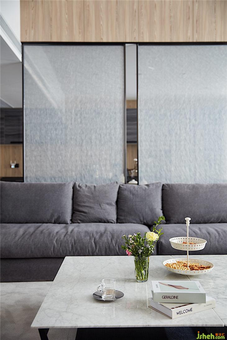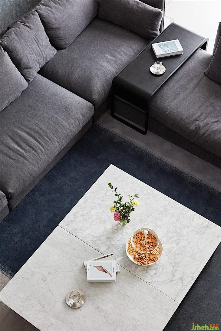 整個設(shè)計中,最吸引的軟裝搭配就是這套寬大的沙發(fā)了。