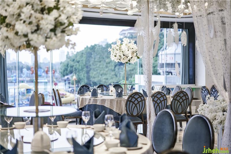 在婚宴廳,酒店選用大量純潔的白作為背景,配合藍(lán)的主旋律。窗外充沛的陽(yáng)光,開(kāi)闊的視野,綠蔭的樹(shù)木與室內(nèi)浪漫的鮮花相輔相成,仿佛輕靈的鳥(niǎo)兒都在為新人祝福。