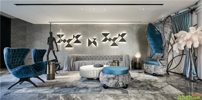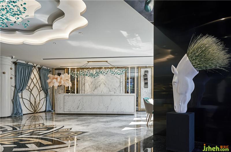 基于婚禮的基調(diào),酒店以靜謐而愜意的藍(lán)作為主旋律,營(yíng)造一種浪漫的氛圍,同時(shí)對(duì)藍(lán)賦予不同層次的色調(diào)和飽和度,在感官上又能帶給我們獨(dú)特的視感。