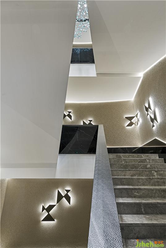 前廳的高度是設(shè)計(jì)的一個(gè)關(guān)注點(diǎn),由于本身的構(gòu)造問(wèn)題,無(wú)法給予大堂充分的伸展空間,因此后期為了避免壓低原本尚不充足的空間,需要同時(shí)考慮燈飾方面的舒適程度。