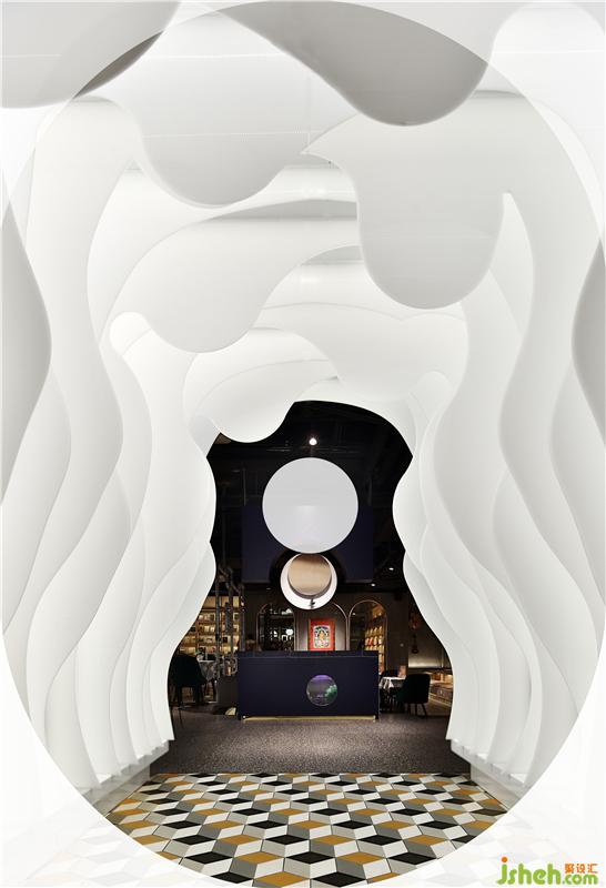 江西首家樊登書(shū)店、音樂(lè)綜合體在南昌盈石廣場(chǎng)驚艷亮相。書(shū)店經(jīng)營(yíng)面積600平方米,目前陳列圖書(shū)2.5萬(wàn)冊(cè),集展演活動(dòng)、咖啡品鑒、音樂(lè)教育、文創(chuàng)商品、圖書(shū)音像經(jīng)營(yíng)板塊為一體的體驗(yàn)式情景書(shū)局,書(shū)店空間設(shè)計(jì)上明亮、開(kāi)闊,氛圍營(yíng)造上優(yōu)雅、溫馨,充滿(mǎn)人文藝術(shù)氣質(zhì)的氛圍。進(jìn)門(mén)結(jié)合音樂(lè)元素,將12把不同的吉他為元素演化的時(shí)光隧道,進(jìn)門(mén)穿透的正對(duì)書(shū)籍也是引用古代裝幀書(shū)籍概念做成水吧操作暗柜,上面采用吉他空心圓形的概念做成動(dòng)態(tài)時(shí)光裝置。
