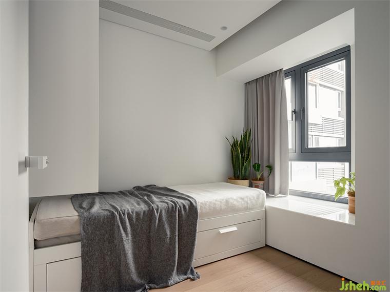 次臥配置了可延伸的箱體床,裝修設(shè)計(jì)平日可收合為單人床或沙發(fā),節(jié)省空間,也能滿足不時(shí)之需。