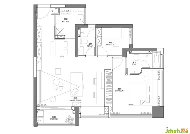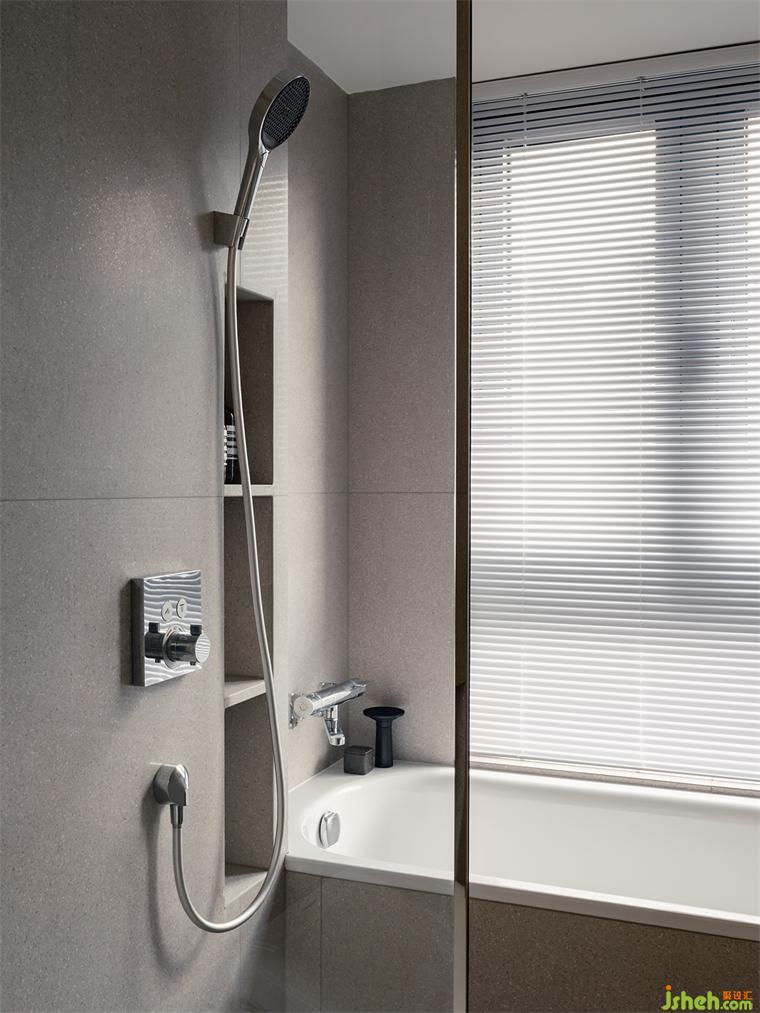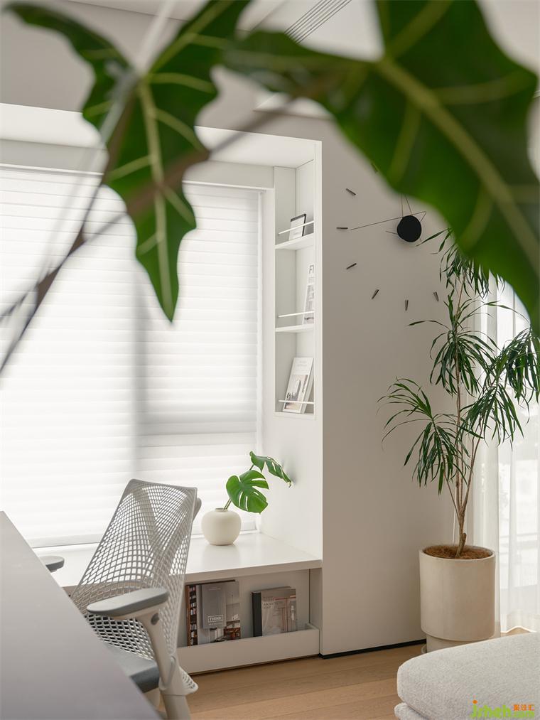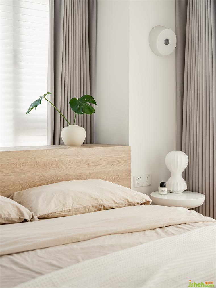 主衛(wèi)空間有限,但屋主希望能有較完善的沐浴與洗漱體驗(yàn),需求與空間雖有沖突,但這也間接引發(fā)了我們對透景與體塊穿插的想象。將面盆區(qū)向臥室拓展,與主臥梳化臺共構(gòu),裝修設(shè)計(jì)更為深切的連結(jié)了兩個(gè)空間,連接的弧線也柔和了空間形體。