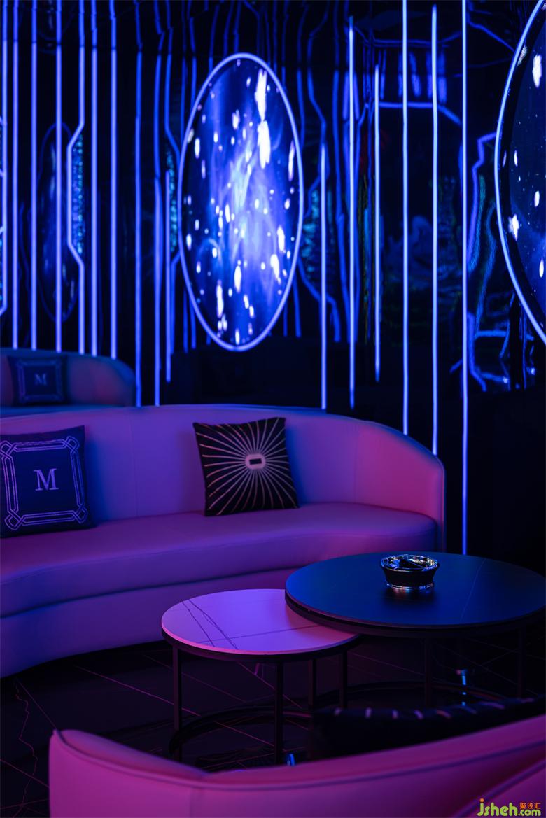 設(shè)計師根據(jù)每個包間的主題,定制了舞臺燈光及動畫效果。娛樂城設(shè)計以聲光電的形式將所有主題以更靈動的形式呈現(xiàn)出來,隨著音樂節(jié)奏的跳動,投射出的千變?nèi)f化的電光秀(畫面及燈光),娛樂城設(shè)計光影變化中讓消費者感受到炙熱又松弛。