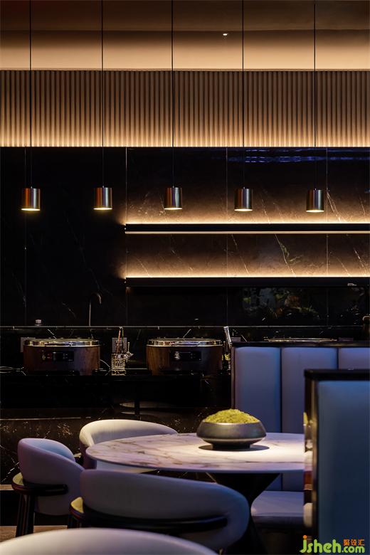 在自助餐廳的設(shè)計(jì)中,通過音樂、美食和色系的搭配以此實(shí)現(xiàn)置身度假狀態(tài)般的放松與愉悅,湯泉足道設(shè)計(jì)師為了貼合空間多元化的設(shè)計(jì)核心,強(qiáng)調(diào)休閑愜意的屬性,在流通的布局空間中制造相互對(duì)話的可能,讓眾多設(shè)計(jì)元素交織重組,從而變換出驚喜的空間。