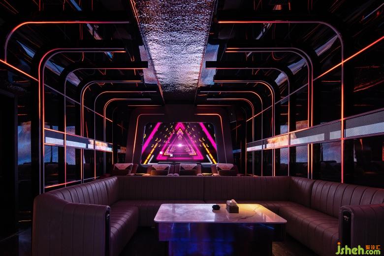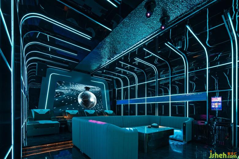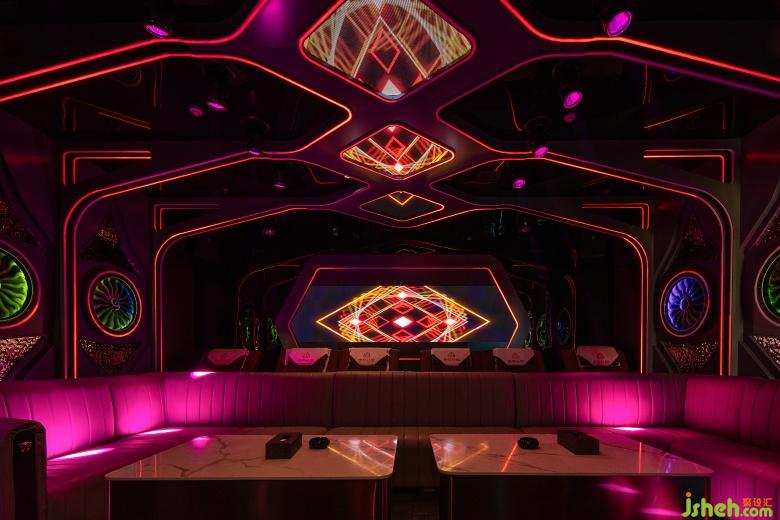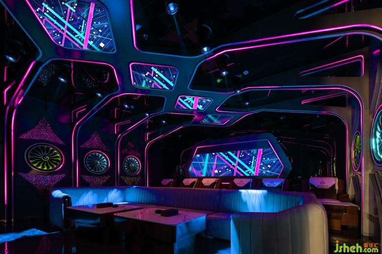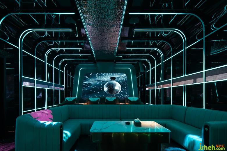 進(jìn)入K歌綜合區(qū),不負(fù)所望,每一間包廂都各有特色。微帶科技感的幾何線(xiàn)型光影、顯示屏、蜂窩狀木藝模塊、風(fēng)扇造型,調(diào)動(dòng)著人的五感六覺(jué),在這樣的環(huán)境中K歌或是沐足,怎能不身心放松呢?