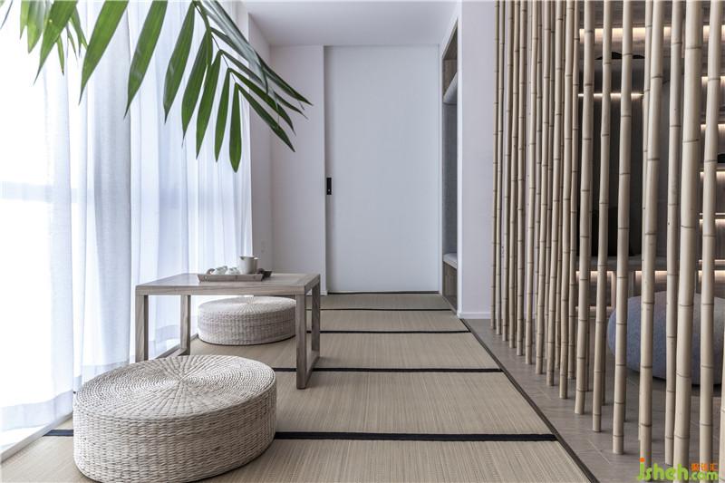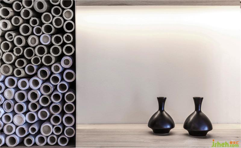 · 強調(diào)材料的自然特性,運用將普通材質(zhì)的特性延展發(fā)揮到極致。質(zhì)樸的水泥漆,溫潤的木飾面板,自然的竹子以及白色涂料。