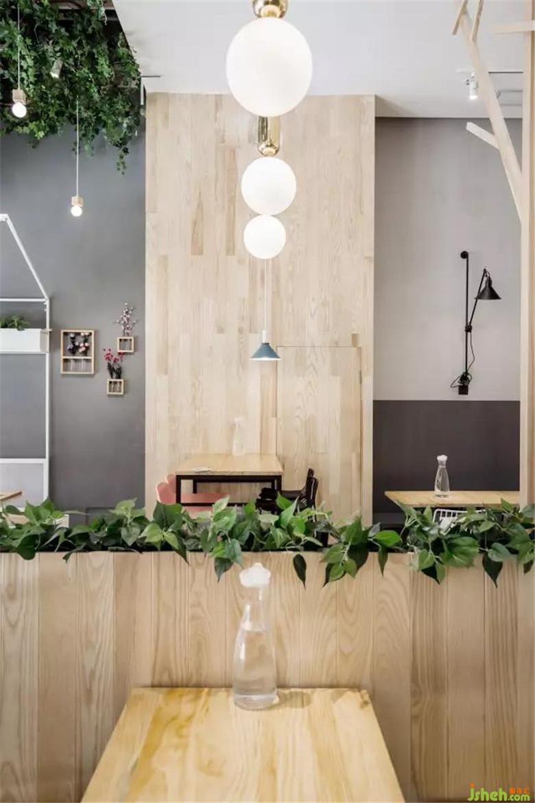 木制隔斷中的那一抹綠色藤蔓植物,讓空間充滿生機(jī),讓置身其中的客人瞬間忘了生活的煩惱和工作的疲憊。