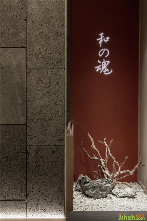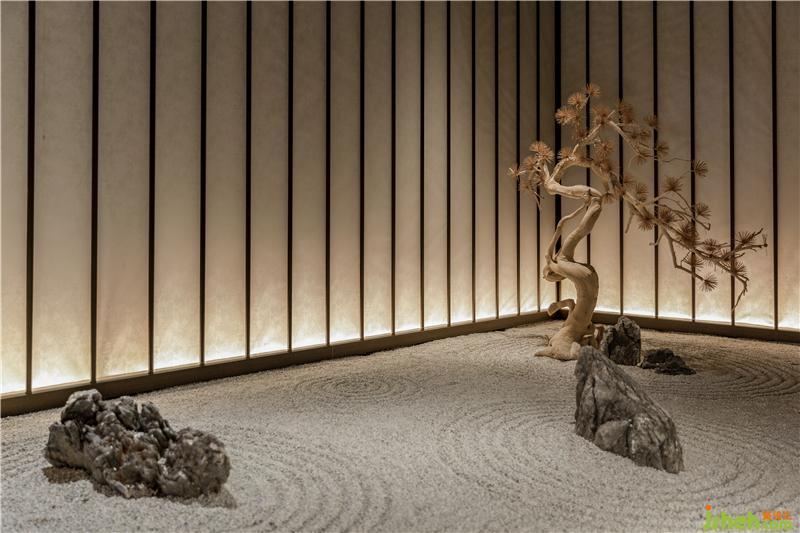 將日本文化代表形式枯山水落景于餐廳設(shè)計(jì)入口處,一隅寧?kù)o、引人入勝。
