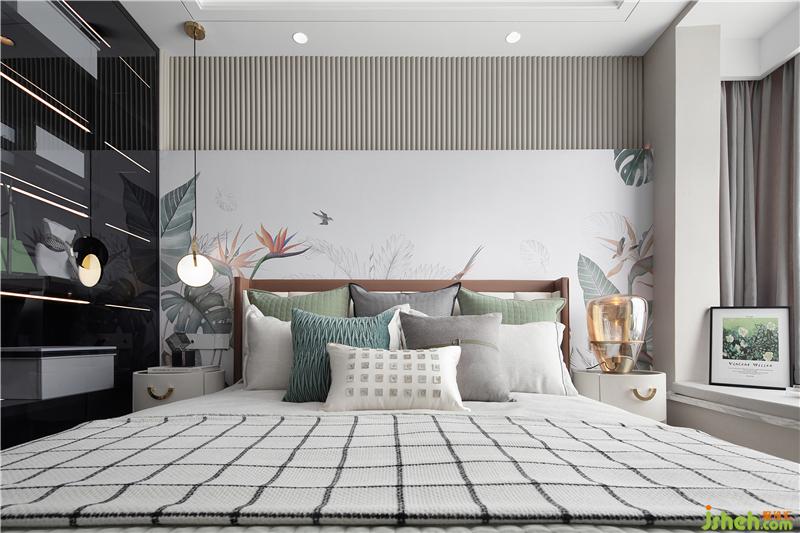 源于自然的綠意在空間內(nèi)蔓延開來(lái),不同材質(zhì)的裝飾面,以及精致的裝置藝術(shù)畫,株洲樣板房設(shè)計(jì)將森林的生態(tài)性展現(xiàn)在眼前。自然肌理的地毯和手工質(zhì)感的藝術(shù)擺件,圍合出自然主義的本真之境。