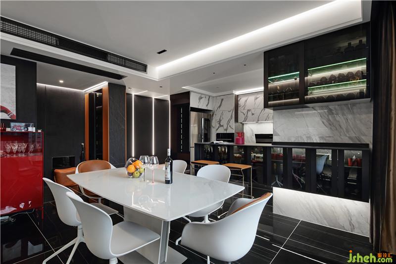 廚房和餐廳之間的吧臺(tái)是很有生活情調(diào)也很實(shí)用的東西。一個(gè)人的時(shí)候,坐在The BHS的高腳凳上,聽(tīng)著音樂(lè)小酌,也許你會(huì)暫時(shí)忘記眼前的煩惱。