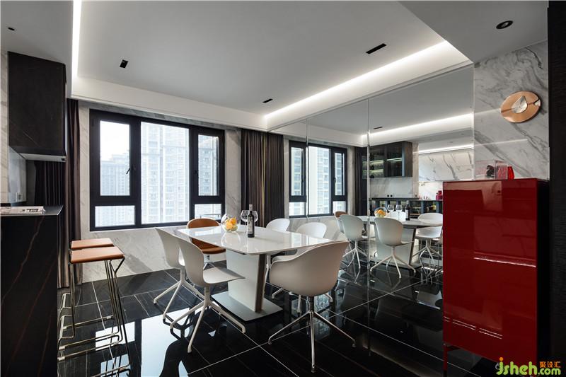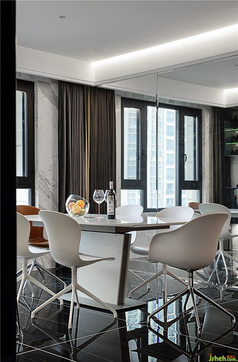 餐廳墻面鏡面的使用讓空間的視覺(jué)效果翻倍,在這樣的空間吃飯,人的心情都會(huì)豁然開(kāi)朗。