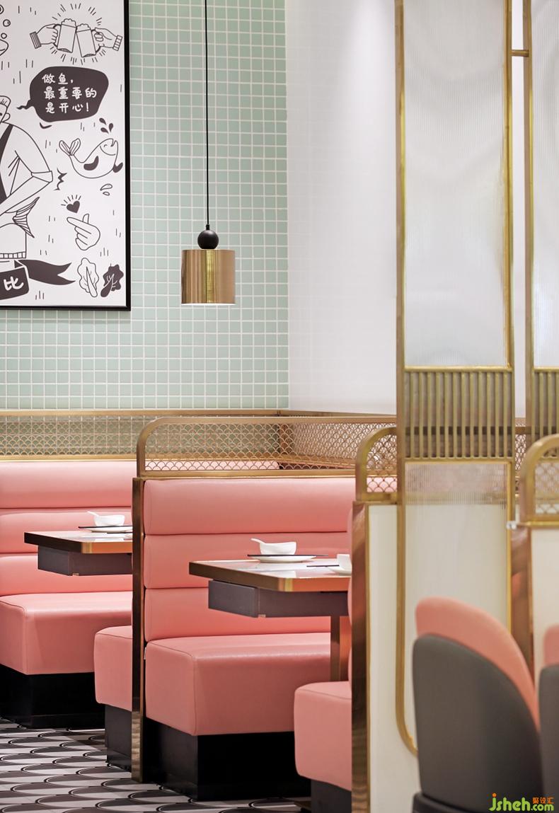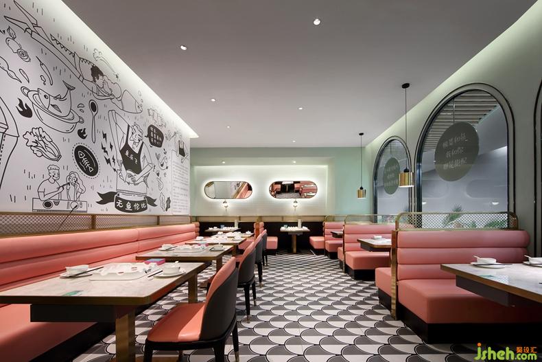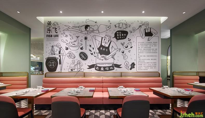 品牌文化為空間注入鮮活的靈魂,“無(wú)魚(yú)倫比”的主題插畫、“酸菜和魚(yú) 我和你 都是絕配”等品牌文案,皆是年輕人青睞的趣味化溝通方式,拉近空間、食物與顧客之間的距離。深圳餐廳設(shè)計(jì)