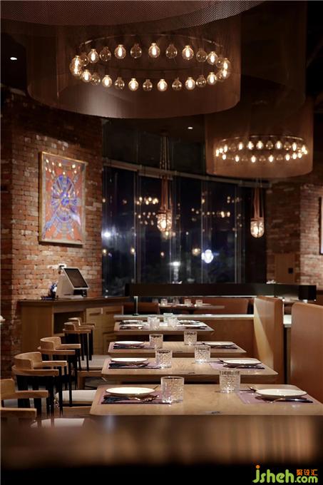 鋼板材質(zhì)的應(yīng)用,讓餐廳硬朗而富有質(zhì)感,肅靜而雅致,樸素水泥墻和紅磚的使用,又悄然地為餐廳注入了溫度。餐廳設(shè)計(jì)