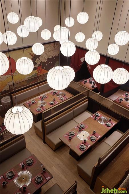 純色暖簾輕輕飄動(dòng),日式酒具成隊(duì)排列,溫潤的竹子陣列環(huán)繞,還有墻上的日式插畫,點(diǎn)亮空間的竹編燈籠等;