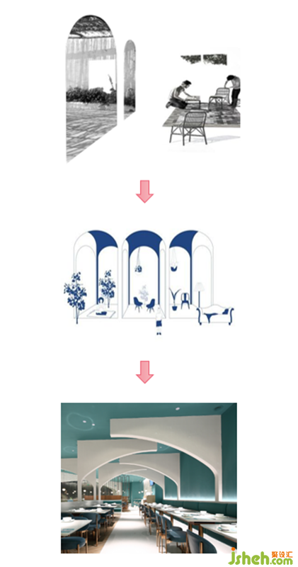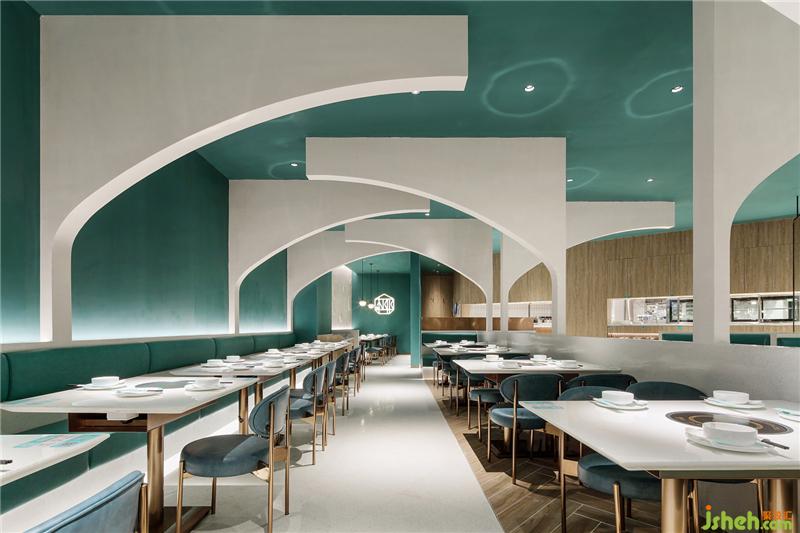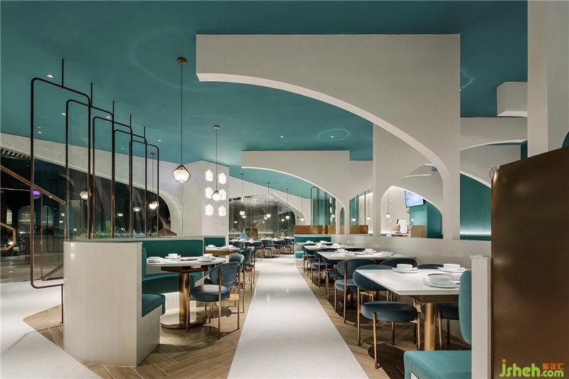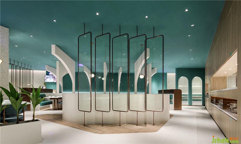 走進(jìn)餐廳,“椰樹”的造型十分搶眼,這是拱門結(jié)合椰客logo圖案,經(jīng)由切割后抽象化的椰樹形態(tài),一棵棵“椰樹”在餐廳里層層掩映,豐富著空間層次感;抽象化的“椰樹”錯(cuò)落有致,如一個(gè)個(gè)畫框區(qū)隔著客人,走一步,換一框,左右互通,自在游走,在椰樹和畫框里角色互換,玩味無窮妙處。