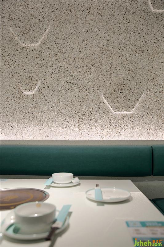 此次椰客店鋪的升級,設計師通過在有限區(qū)域內(nèi)將五邊形的各種形態(tài)盡數(shù)性羅列出來,用以探討空間構成的可能性,并將這種分割融入空間,打造出一個椰樹下的味覺殿堂。洗米石和木材的搭配又增進了餐廳的親和力,內(nèi)外洋溢著休閑度假氣息。