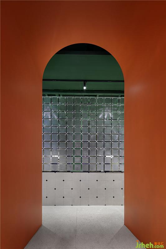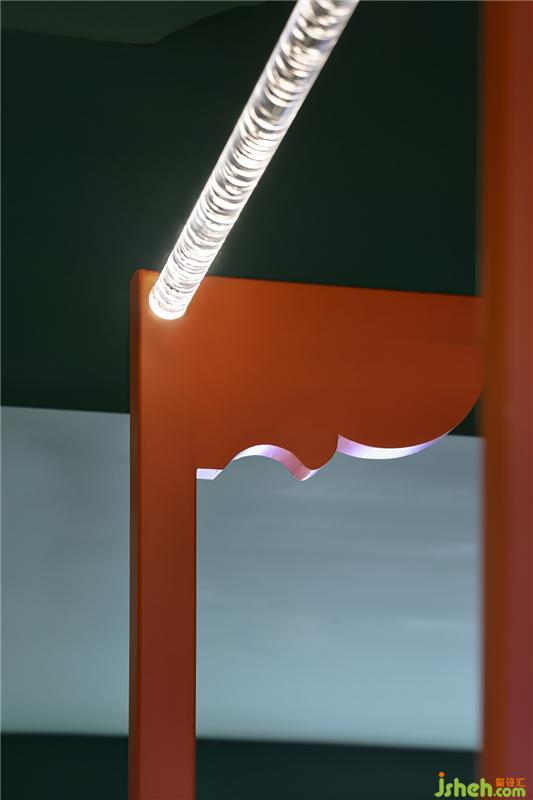 傳統(tǒng)的雀替符號(hào)恍如村寨重現(xiàn),現(xiàn)代亞力克氣泡棒將其一一串聯(lián),營(yíng)造出一種村寨迎接遠(yuǎn)方來(lái)客的感覺(jué)。傳統(tǒng)元素和現(xiàn)代材質(zhì)相融,也足見(jiàn)設(shè)計(jì)師對(duì)炭舍品牌文化的把控和細(xì)節(jié)考量。