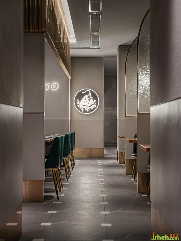 包間墻面的肌理襯托出大漁logo的低奢貴氣