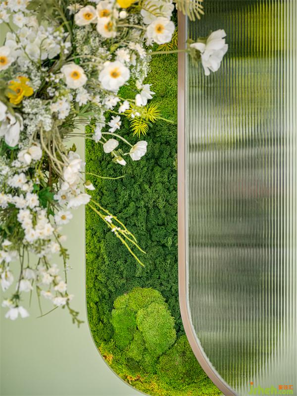 素雅潔淨的水磨石溫潤內(nèi)斂,圓潤軟萌的桌凳呼應(yīng)鏡面的軟萌;還有氛圍擺件和綠植,是視覺跳脫上的點睛之筆;