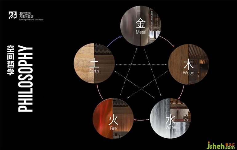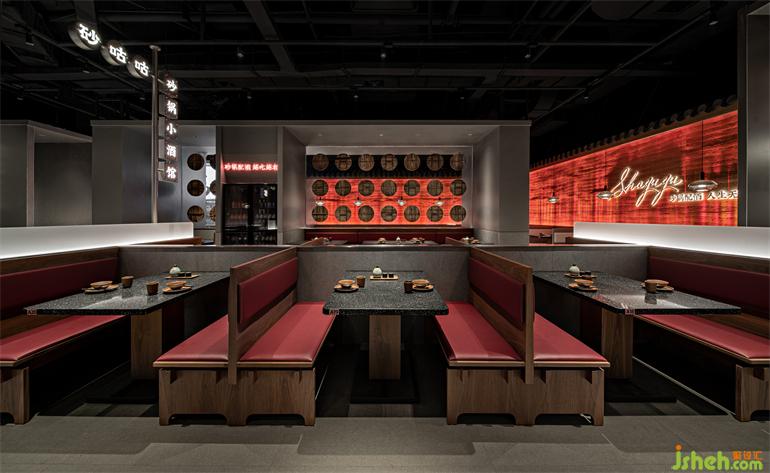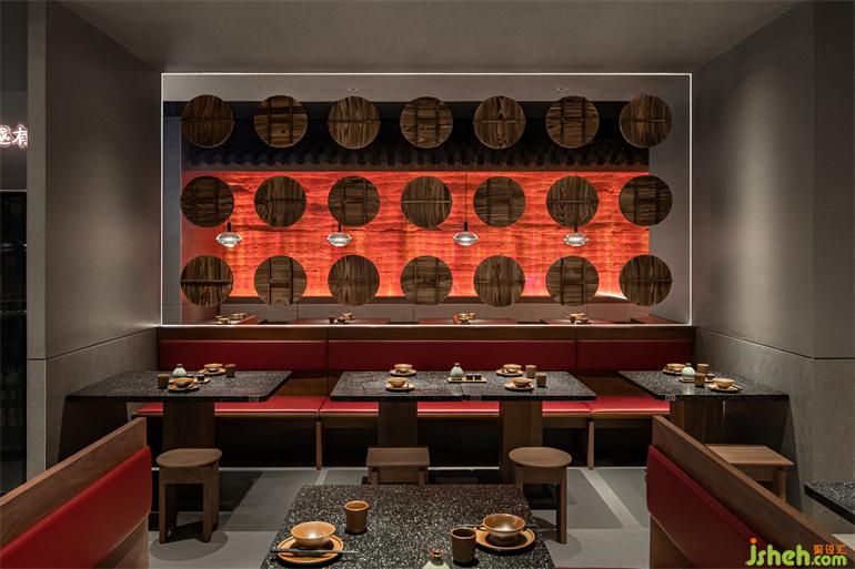 小酒館設計又以金木水火土五行元素為基礎的材質應用配比,品牌IP和品牌超級符號的打造,實現(xiàn)俠氣充盈、開合有度,渾然一體沉浸式場景餐廳空間。水木相調(diào),火土并濟,孜孜以求文化傳承的同時,處處呼應著自然平衡的智慧。
