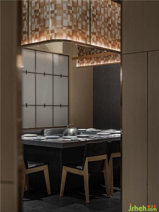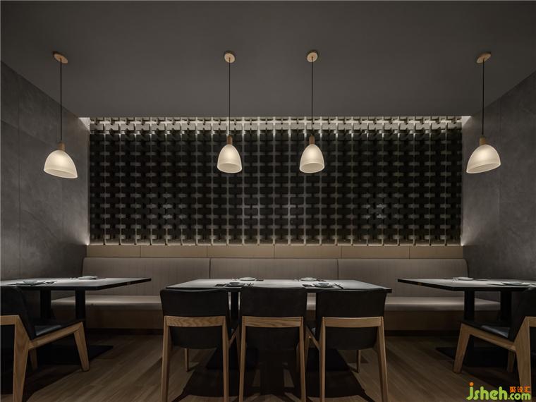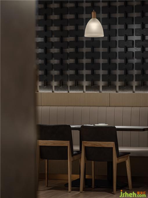 在燈光點綴下,十字金屬結(jié)構(gòu)墻,質(zhì)樸的材料,肌理的紋路,成為了重要的氣氛制造者。餐廳設(shè)計讓人在進入空間的剎那,便能迅速感知到設(shè)計試圖營造的質(zhì)感與溫暖并重的氛圍。