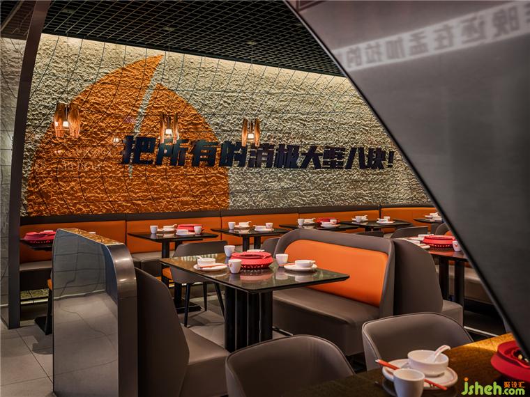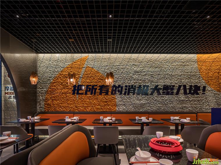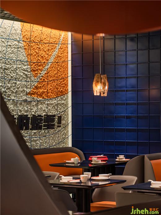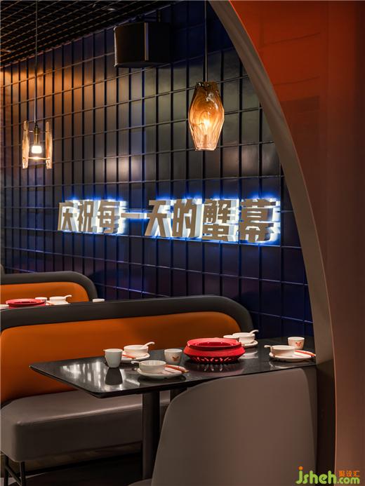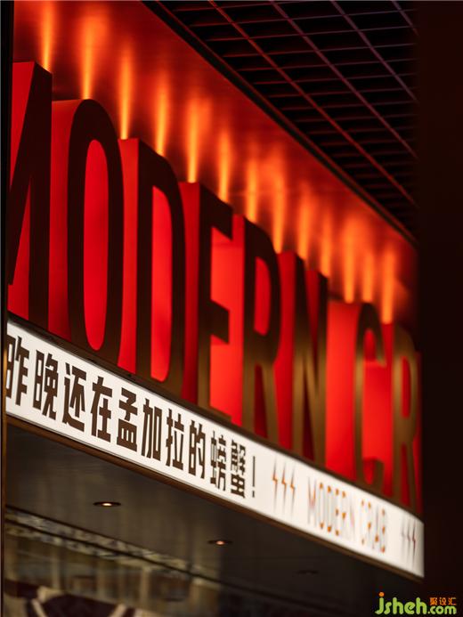 由弧形勾勒形成的客座就餐區(qū),像是迷你版的圓形劇場,餐廳設(shè)計(jì)在空間中形成聚焦的舞臺效果,隱喻“慶祝每一天的蟹幕”的互動主題,賦予了餐廳獨(dú)特的性格,專屬于摩能MODERN CRAB。