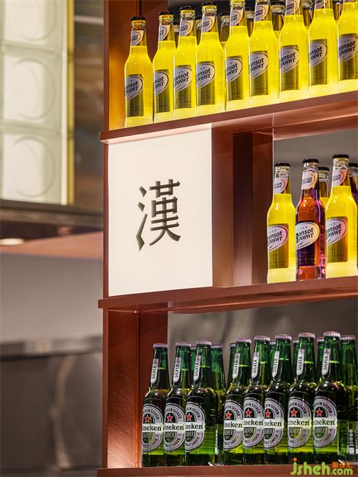 整面酒水柜的陣列兼顧收納和形象展示功能