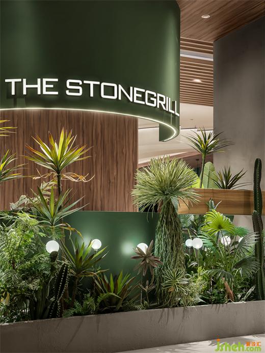 在高低錯落的綠叢掩映間,強烈的色彩反差對比凸顯御牛紀THE STONEGRILL的英文標(biāo)識,鏈接深化符號記憶,幫助品牌實現(xiàn)有效的印象塑造。