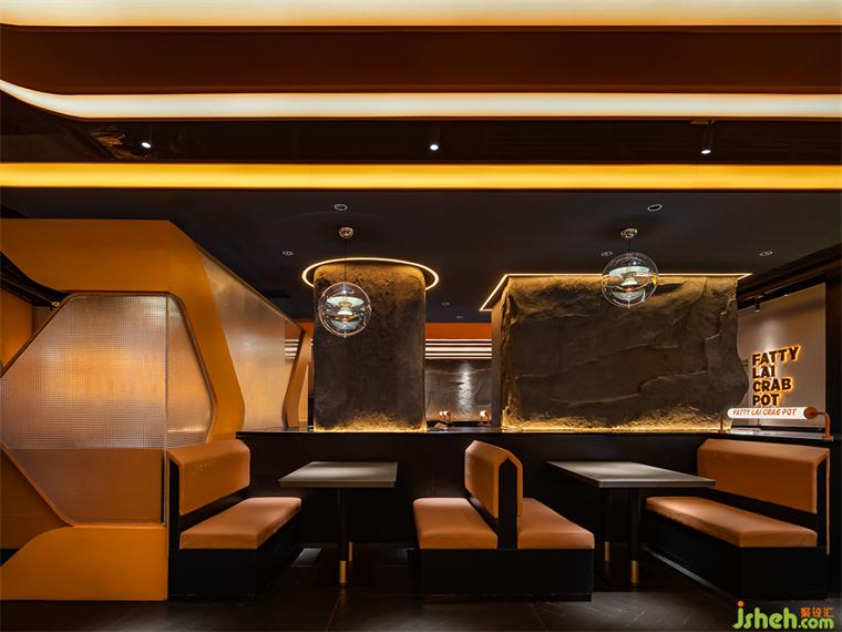 深圳領(lǐng)展中心城店是賴胖子品牌與藝鼎設(shè)計共同合作的第一家門店,餐廳設(shè)計師以核心食材“螃蟹”作為靈感創(chuàng)作的起點,同時將視線轉(zhuǎn)移至地球之外,打造一座極具科幻氣息的“火星吃蟹站”。