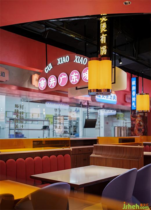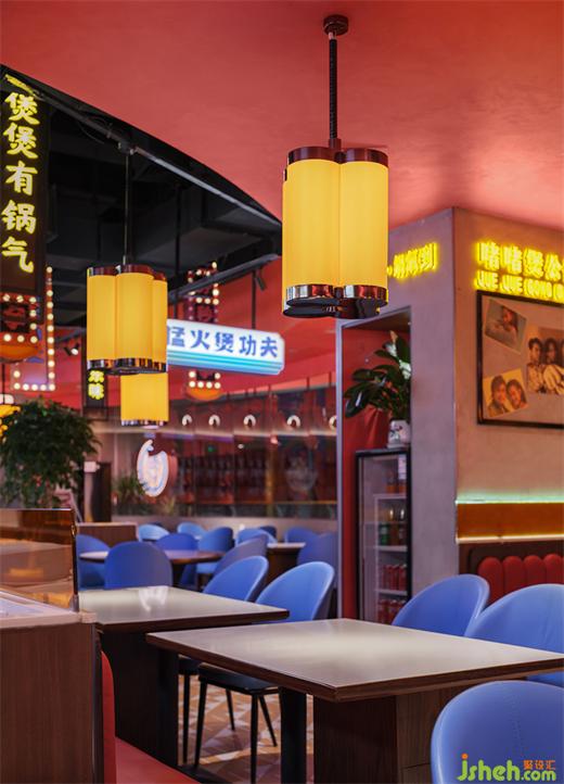 經(jīng)典閃爍的霓虹燈招牌,投射出過(guò)去街頭繁華的城市商業(yè)縮影。餐廳設(shè)計(jì)顯眼絢爛的幻彩燈光結(jié)合醒目的特色標(biāo)語(yǔ),舊時(shí)代的產(chǎn)物經(jīng)由我們熟悉的視覺(jué)場(chǎng)景語(yǔ)言,烘托沉浸式的市井氛圍。