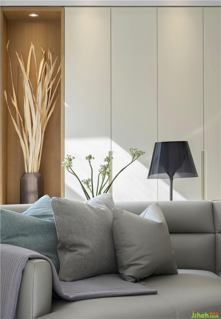 北側(cè)墻的入室門、衣帽間門均做隱形門,令整個空間保持流暢和簡潔。
