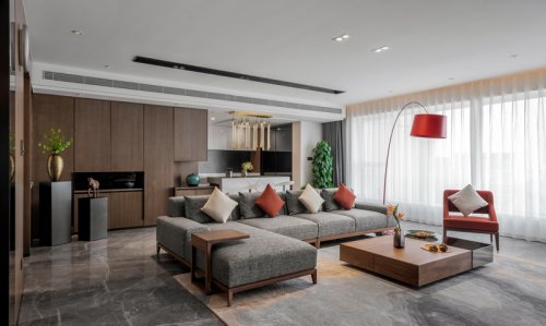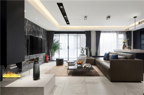 客廳區(qū)原建筑分成戶外陽臺和室內(nèi)兩部分,拆除了陽臺合并入室內(nèi)客廳,令空間更為寬松。無主燈的燈光設(shè)計,需要更專業(yè)的刻畫好每個功能區(qū)域的燈光強弱與冷暖層次。