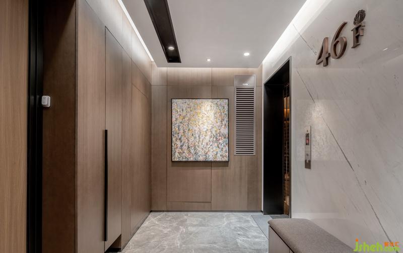 電梯廳原本是公共區(qū)域,業(yè)主劉總由于非常支持我完成作品,出錢對(duì)電梯廳拆除改造,因?yàn)殡娞輳d為業(yè)主獨(dú)用,所以也未影響到其他鄰居。室內(nèi)設(shè)計(jì)師改造后的電梯廳簡(jiǎn)潔、沉穩(wěn),同時(shí)增加了鞋柜與換鞋凳功能。