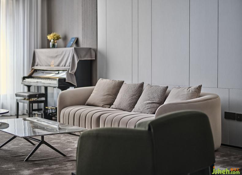 頂?shù)貕赡苎?guī)蹈矩,但沙發(fā)與桌椅也是最能給人直觀視覺(jué)感受的家居物件。室內(nèi)設(shè)計(jì)師設(shè)計(jì)感是點(diǎn)亮生活的靈光,米白長(zhǎng)沙發(fā)、墨綠的客廳單椅,都是視覺(jué)焦點(diǎn),濃厚的極簡(jiǎn)現(xiàn)代氣質(zhì)時(shí)看時(shí)新。