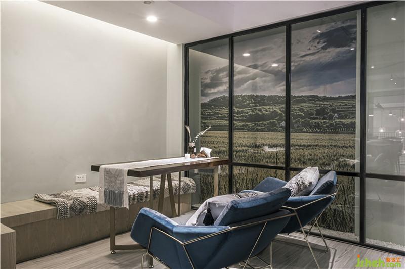 二層作為休息就餐區(qū),簡單個(gè)性的藍(lán)色、灰色棉質(zhì)沙發(fā)慵懶閑適。同時(shí)沙發(fā)窗邊的人造麥田風(fēng)景,為內(nèi)部空間增添一絲靜謐,也更貼近自然,讓顧客能在此處盡享安逸和放空。