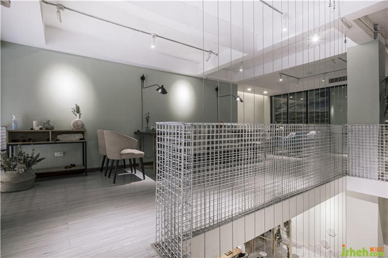 整體空間的風(fēng)格基于LOFT之上,大量運(yùn)用原木和鋼網(wǎng)來構(gòu)造空間,總體基調(diào)以和白色乳膠漆作為墻面背景襯托原木的質(zhì)感。