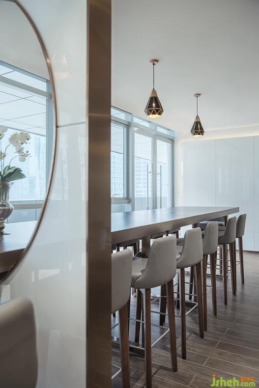細(xì)細(xì)揣摩,布藝與沙發(fā)在質(zhì)感上的對(duì)立幾乎處處可見,配上桌椅的光度,看似不搭邊際,卻在型與面的處理上,顯得極為合理。
