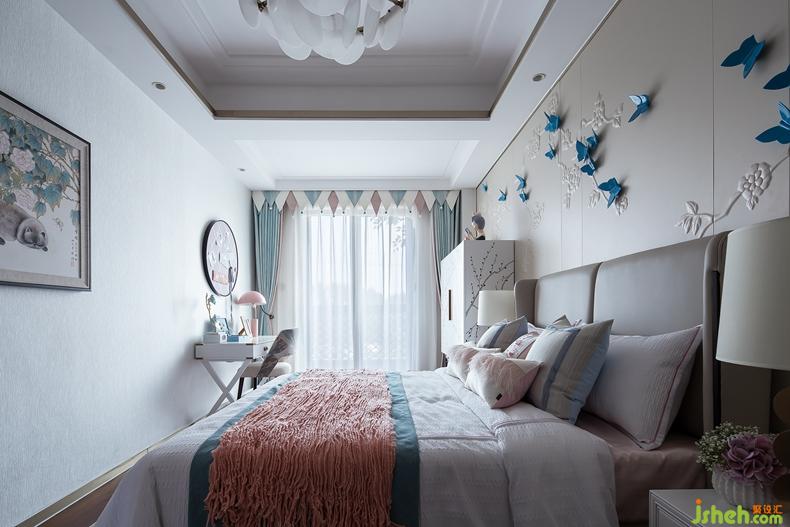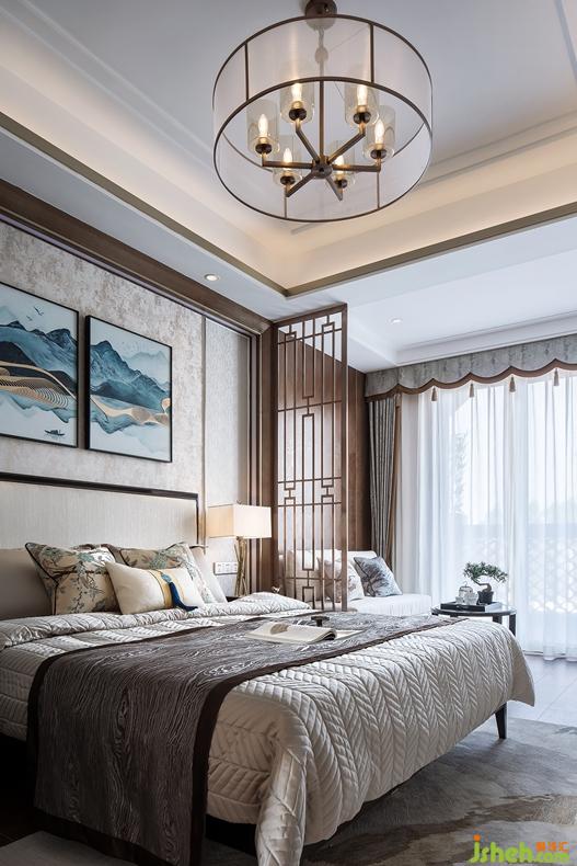 臥室的設計,以淺色調延續(xù)了空間清雅之風,相較之,其些許不同,是多以色彩上的“暖”基調,營造了空間的舒適和溫馨。軟硬裝搭配和諧統(tǒng)一,吐露春意的梅花、松柏將東方之美同時隨心融入。