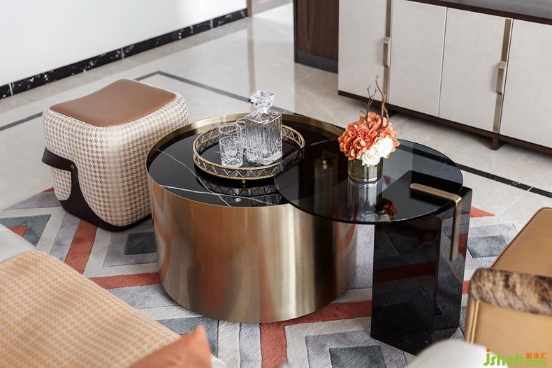 灰色的菱形格紋地毯紋絡(luò)凹凸起伏,與沙發(fā)形成不同色階的對(duì)比與延伸。高貴的灰色大理石為基調(diào)搭配出低調(diào)奢華之感,茶幾拉絲面金屬材質(zhì)點(diǎn)亮了空間活力,空間疏密有致,調(diào)節(jié)空間節(jié)奏感,進(jìn)而使環(huán)境和諧有序?!按蠖Y不辭小讓”,真正的奢華隱藏于細(xì)節(jié)的雕琢之中,集于凝練成簡潔、優(yōu)雅的存在,才能直抵內(nèi)心。