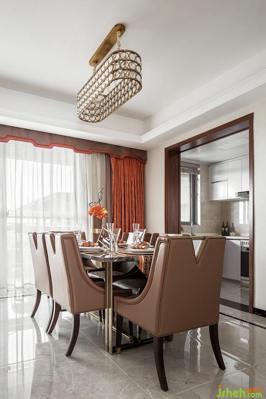 餐廳作為廚房與客廳的鏈接,在色調和材料的使用上,保持了空間的連貫性,一盞奪目的水晶光影映照在現(xiàn)代簡約的大理石臺面上,奢華皮椅搭配精致餐具,別具一格,細枝末節(jié)處讓生活更添藝術色彩。我們面對繁忙與壓力的同時,回歸到家庭中,卻也始終保持內心的柔軟與寧靜,品味著一杯香檳,約上三五好友朋酒之會,依然如此優(yōu)雅而從容。