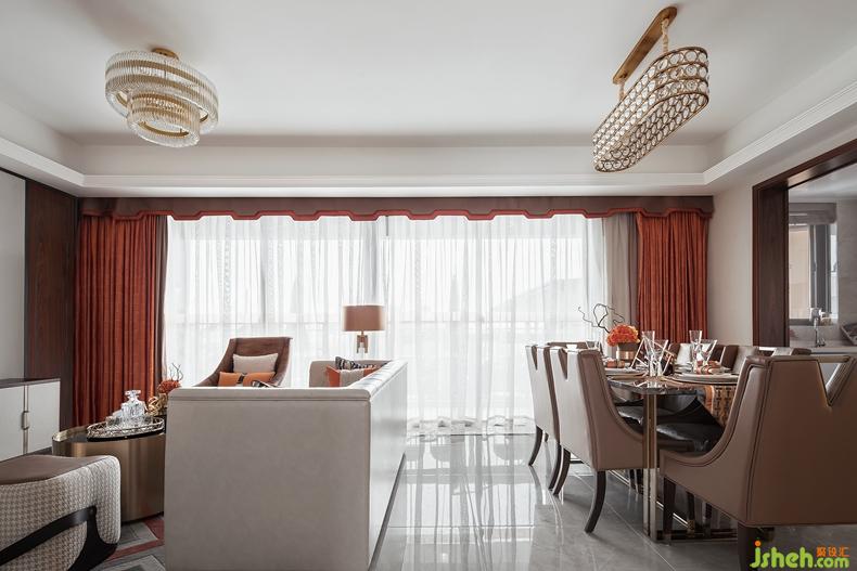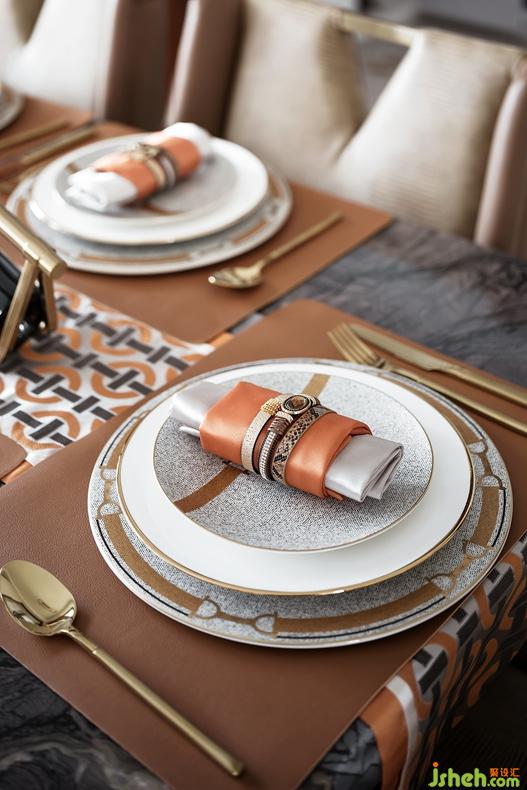 縱躍大開間的客餐廳擁有客觀的尺度感,愛馬仕橙色及金色配飾,則瞬間讓整個氛圍活躍起來。設計發(fā)揮空間優(yōu)勢,通過合理而巧妙的手法劃分功能區(qū)間,結合精致得體的配飾,讓明媚的陽光得以在空間里隨意跳躍,自由翩躚流淌,為居者提供體貼舒適的居家時光。