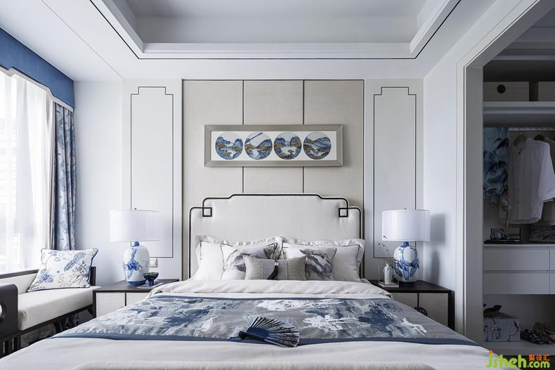 書房里同樣秉承了大廳藍(lán)白色系,青花之美無不顯露,高貴素雅的青白搭配呼之欲出與客廳遙相呼應(yīng)。書房的設(shè)計(jì)渲染著濃厚的書香氣息,現(xiàn)代中式的簡潔設(shè)計(jì)元素在其中,使空間更大氣舒適。