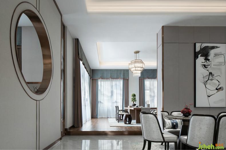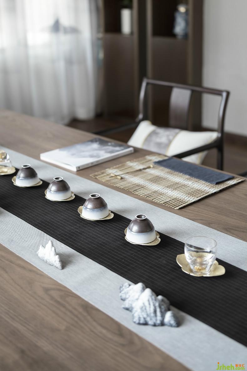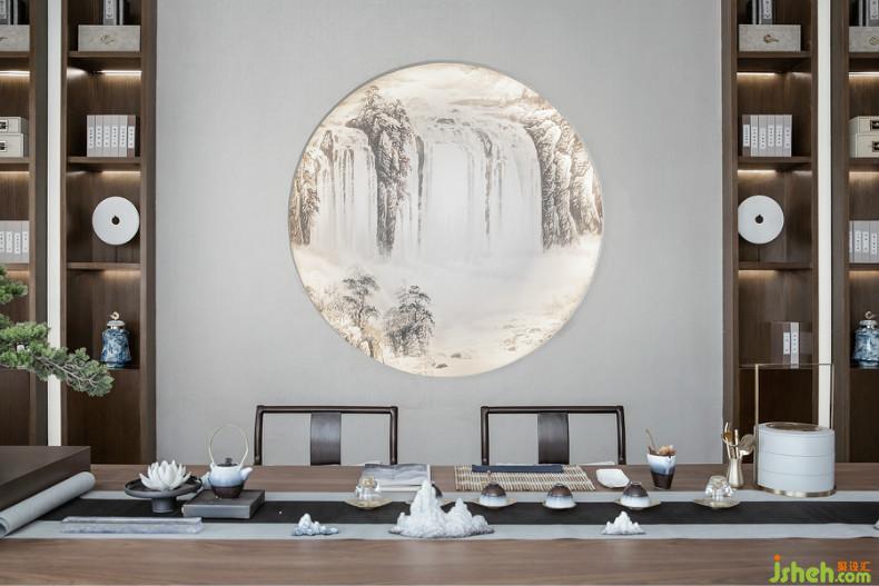 “茶者,南方之嘉木也。” 簡潔雅致的茶室空間,室內(nèi)設(shè)計師設(shè)計中延續(xù)山水視覺,以灰階淡彩登堂。窗簾山水淡墨色點綴流線山水畫,清泉煮清茶,人在這里,消磨一盞茶的時光,歲月靜好。